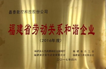 嘉泰数控:被授予“福建省劳动关系和谐企业”荣誉称号