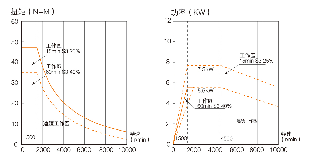 标配FANUC 10000rpm主轴电机功率扭矩图