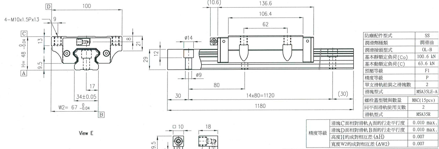 2、线轨的动、静载荷分别达到100.6KN,与63.6KN;