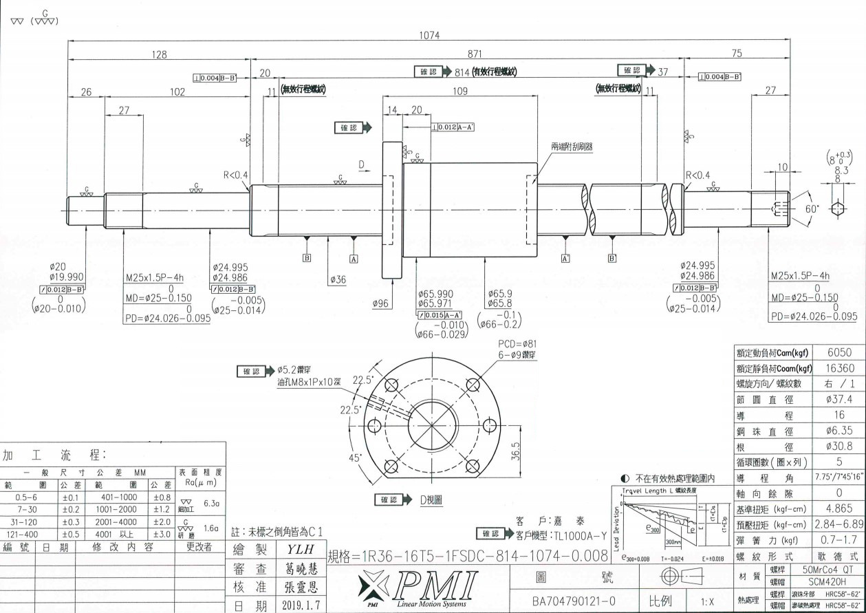 2、丝杠导程16mm、静载荷分别达到16360kgf