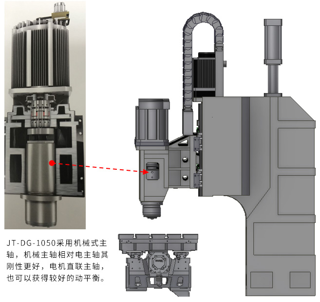 JT-DG-1050的主轴电机在低速时有较高的扭矩电机功率大,适合大面积开粗加工用。